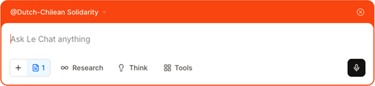 ⚠️ Importante: Si abres una nueva ventana de chat en algún momento, debes asegurarte de que el agente "Dutch-Chilean Solidarity" esté activo y que el archivo adjunto "40 años 40 historias" esté conectado (clip resaltado). Si no es así, el chat será genérico y no será relevante para este estudio.