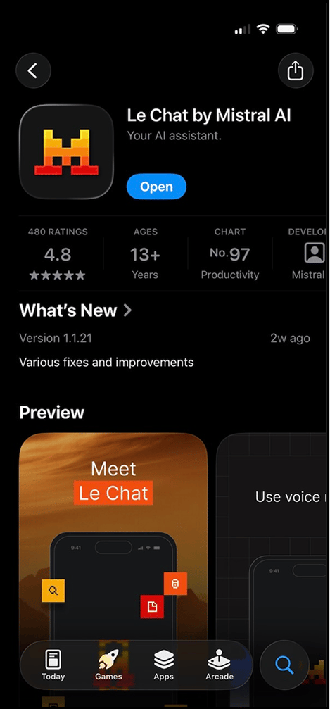 Descarga la aplicación "Le Chat" disponible gratis en el Android o Apple App Store